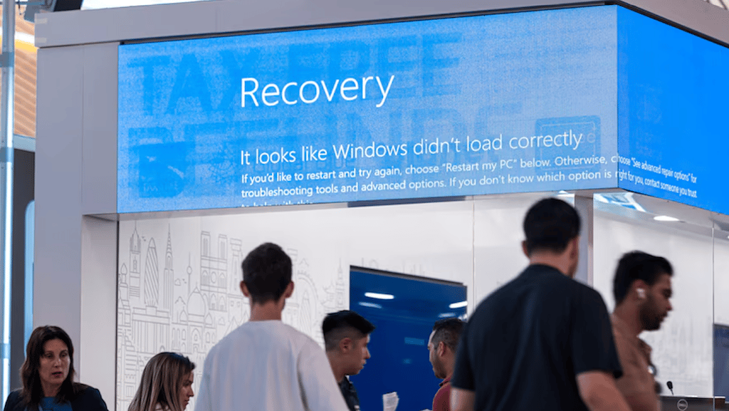 A scene from an airport during the 2024 crowdstrike meltdown where information display screens, amongst other services became unavailable due to the cascade of failures.