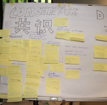 Over the two days, we undertook extensive brainstorming exercises with local stakeholders; identifying problems, dilemmas, areas of conflict; as well as things that are working well. It was an ideas forum with invited representatives of the local community and other key stakeholders and experts.