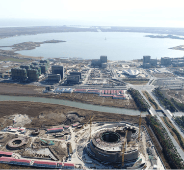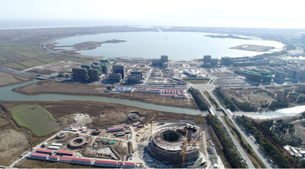 The planetarium under construction in 2020 with the view towards Linggang town (Photo: Ennead)