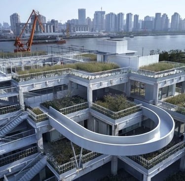 Shanghai has some exemplary industrial adaptive re-use developments. This one is no exception. This project by local architects TJAD Original Design Studio, which forms part of the wider Yangpu Riverside regeneration project, takes an unremarkable disused tobacco warehouse and converted it into a multi-functional cultural space. At the same time the building acts as a huge green bridge connecting the city to the river bank over a public road.