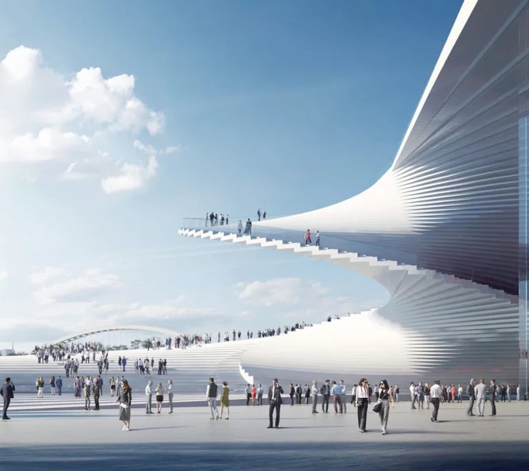 A spectacular open-air spiraling staircase connects the ground and rooftop while offering views across the city and riverbank. According to Norwegian architects Snøhetta the entire design aims to “promote public ownership of the building for the people of Shanghai and beyond." The roof will link to a large stepped plaza, and can double as a public meeting place and a stage for large-scale events. The plaza is said to be open for visitor access 24 hours a day and provides a link down to the waterfront.